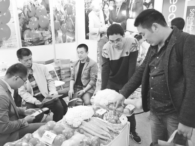 種植戶在北京博收種子有限公司展臺前了解該公司番茄新品種“旗艦”的品種特性和種植技術。