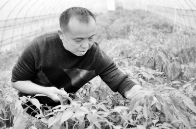 11月17日,貴州省錦屏縣鐘靈鄉陽艾村楊涵江正在自家的蔬菜大棚里采摘辣椒。據了解,今年他家種了30個大棚8畝地的無公害蔬菜,品種主要有辣椒、紅菜薹、茄瓜等8個品種,輻射帶動周邊21戶貧困戶種植大棚蔬菜30畝。目前,鮮椒供不應求,每公斤批發價5元,按照每畝收鮮椒200公斤計算,僅鮮椒一項就能為21戶貧困戶創收80多萬元。