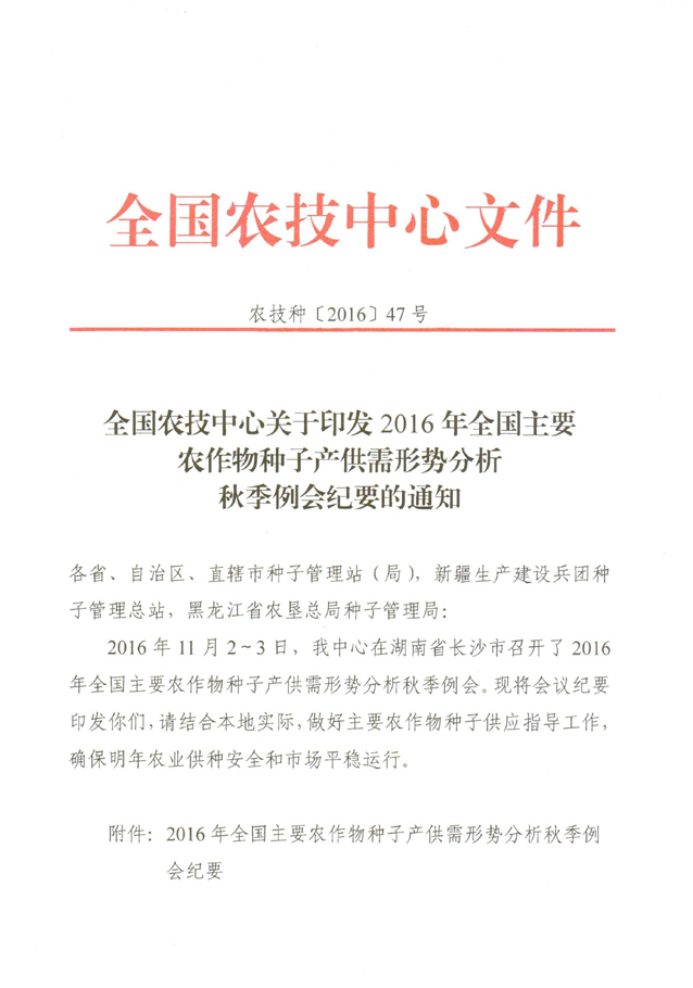 發布日期:2016-12-10 來源:全國農技中心種業信息與技術處 瀏覽次數: