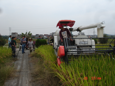 為了驗證新品種“甬優1540”在橋里點的豐產能力,10月25日下午,我站邀請了以中國水稻研究所水稻育種專家楊長登研究員為組長的,水稻產量驗收專家組一行5人,對橋里點102畝“甬優1540”示范方,進行了3個代表性田塊的全田機械化實割產量驗收。結果上田濕谷畝產分別為984.3公斤、952.2 公斤、 936. 2 公斤, 經樣品曬干并折算成標準水分后,3丘田的干谷畝產分別為847.1、 835.3、 852.0公斤。得出“甬優1540”百畝示范方的驗收平均畝產為 844.8公斤。這已大大超出了國家對超級稻品種認定的產量標準,創造了永康市中熟單季水稻連片高產的新標桿。新品種“甬優1540”今后有望向農業部申報“超級稻” 的資格認定。