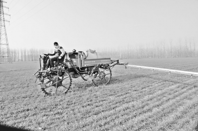 12月7日,安徽省宿州市埇橋區順河鄉風光家庭農場在給麥田噴灑除草劑。祝家剛攝