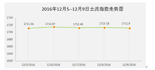 本周 “土(tu)流網?土(tu)地流轉指(zhi)數”從2016年(nian)(nian)12月5日的(de)1711.56到(dao)2016年(nian)(nian)12月9日1711.9,上升(sheng)0.34個(ge)基點,期間土(tu)流指(zhi)數先升(sheng)后降(jiang),但漲跌幅度較小,整(zheng)體平穩。