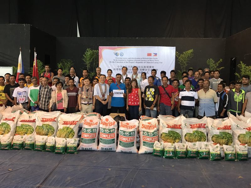 12月16日,中國政府向菲律賓呂宋島中部歐羅拉省的600多位災民捐贈十噸雜交水稻稻種。這是自2014年以來,中國駐菲使領館向菲律賓災民提供的第四次雜交稻種緊急救災援助。