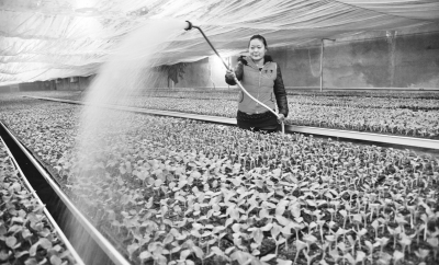 育苗專業合作社員工正在澆灌瓜苗。碭山縣是全國著名的大棚西瓜種植基地,目前已形成制種、育苗、種植、銷售一條龍的產業體系。近年來,該縣積極引導果農把西瓜產業由大做強,加快由傳統種植向“種苗育繁一體化”的現代產業模式轉型,產業競爭力顯著增強,“百思農”西瓜育苗專業合作社培育的優質西瓜種苗遠銷緬甸、老撾等東南亞國家。 崔猛攝