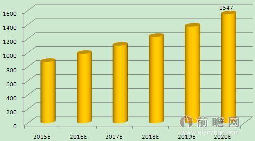 2015-2020年中國種子行業市場規模預測(單位:億元)