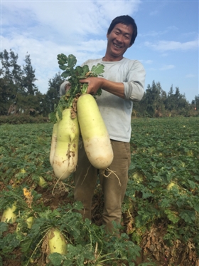 記者了解到,吳干禮是這片沙土蘿卜的主人,他是湖南人,5年前與家人一同來到石獅,先在蚶江工作,為了能有屬于自己的“一畝三分地”,他和朋友一同包下了幾塊地,開始種植沙土蘿卜。事與愿違,3年前,一場大臺風,讓他的“致富夢”破滅,虧了10多萬元,但他還是堅持種植沙土蘿卜,今年,100多畝的沙土蘿卜終于大豐收。