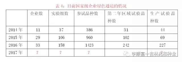 新政策允許省級管理部門能開展聯合體,還能做綠色通道。遼寧省在2016年開展省級綠色通道,有一家遼寧的億元資質大型種子企業已經開展了1年的區域試驗,2017年末開始就會審定通過品種。