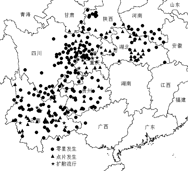 貴州省在8市(州)33個縣發生,其中赫章、納雍、盤縣、水城、平塘、長順、甕安等縣呈點片發生,發生面積39.2萬畝,同比增加13倍,是2周前的5.4倍。