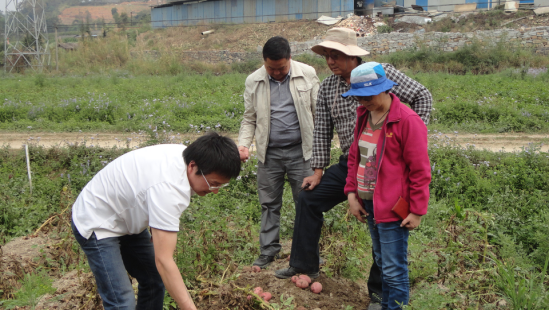 2017年3月6日,云南省現代農業馬鈴薯產業技術體系首席科學家楊艷麗教授和大理州農科院副院長趙宗福及相關人員,在省馬鈴薯技術體系負責人陳際才等的陪同下,首先參觀了德宏冬馬鈴薯機械化收獲和田間銷售現場;隨后察看了鳳薯新品系在德宏州冬作區的田間表現情況,引入到德宏的鳳薯新品系中,鳳薯6號和鳳薯95-11田間表現較好,鳳薯6號屬紅皮淺黃肉、適于鮮食和薯片、薯條加工;鳳薯95-11屬白皮白肉、適于鮮食。云南省現代農業馬鈴薯產業技術體系首席科學家楊艷麗教授和德宏州省馬鈴薯技術體系負責人陳際才等一致認為,這兩個品系有很大的開發潛力,適于德宏州冬馬鈴薯種植,下一步要加大這兩個品種的示范力度。