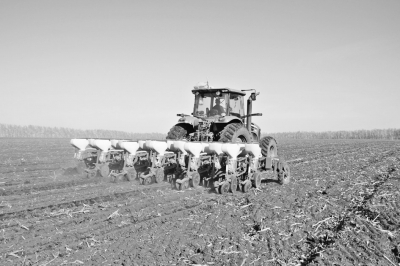 5月10日,在黑龍江墾區建設農場第三管理區的大田里,農業技術人員抓住晴好天氣組織大型精密播種機械,標準化搶播