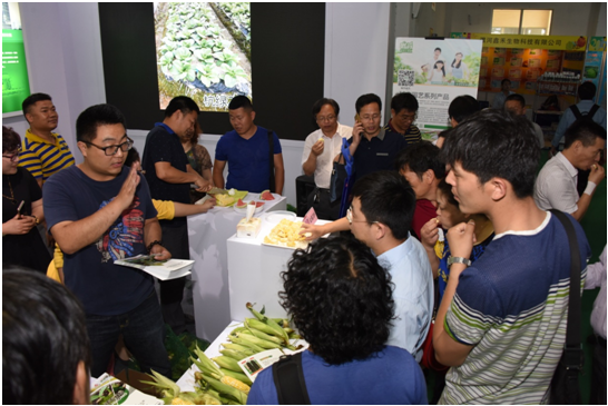 最‘爆款’的要數現場品鑒的超甜水果玉米“金銀208”,鮮穗呈錐形黃白相間可以生食。甜、鮮、脆、嫩、皮薄無渣水分足的口感和高達17度的糖度,不僅吸引了展會期間絡繹不絕的品嘗與詢價采購 “食客”一族;而且上市時間早、種植收益高的特點,更是贏得了現場眾多種植基地大戶與農產品經銷商的青睞,紛紛咨詢種子和種植技術,拋出了合作的橄欖枝。省人大常委會袁榮祥副主任、省政府孫景淼副省長、省農業廳林健東廳長現場品嘗后對其優秀的品質也給予了高度的評價;在會議組委會舉行的精品瓜菜品鑒會上,經微信投票和專家投票,‘金銀208’成為品鑒會“最佳人氣”之一,現場反響火爆。