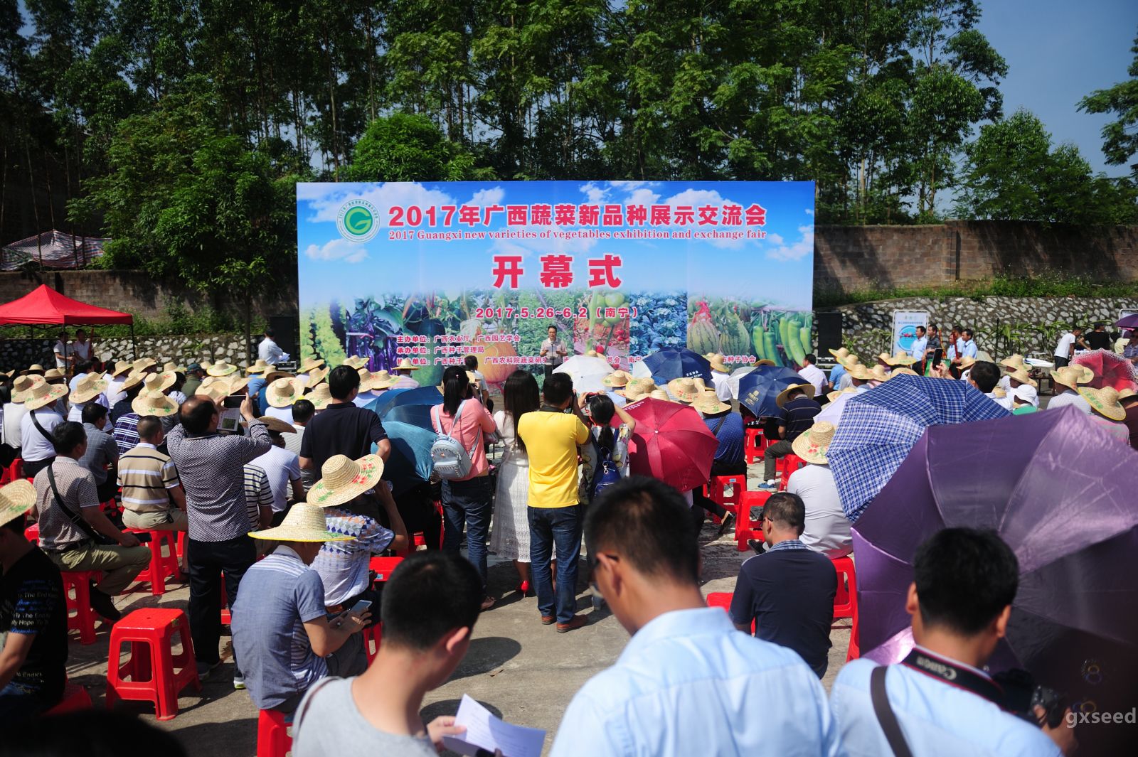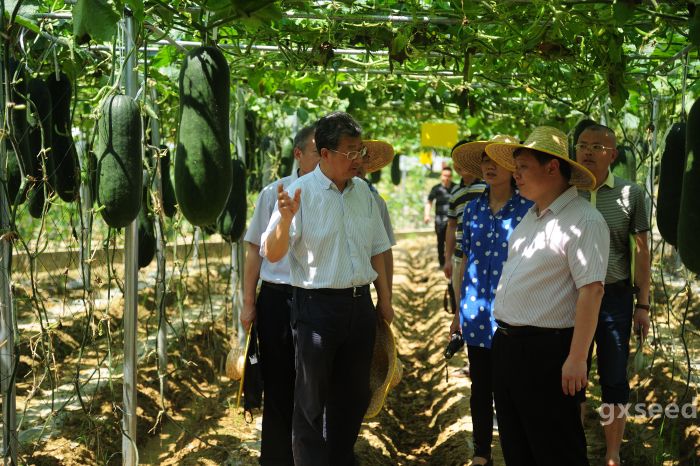 5月26日上午,2017年廣西蔬菜新品種展示交流會在南寧市興寧區五塘廣西國家級農作物品種區域試驗站舉行。自治區農業廳廳長劉俊、副廳長謝東出席開幕儀式。