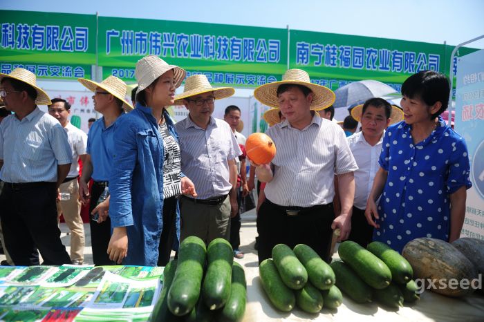 2017年廣西蔬菜新品種展示交流會從5月25日到6月10日共展示17天。田間種植展示了5大蔬菜品類,包括茄果類蔬菜(番茄、茄子、辣椒、甜椒等),瓜類蔬菜(南瓜、冬瓜、節瓜、浦瓜、絲瓜等),豆角類蔬菜,白菜類蔬菜(結球白菜、菜心、上海青等),鮮食玉米(甜玉米、糯玉米、甜糯玉米等),西甜瓜類等,展示品種(品系)1000個以上,每個品種種植約30平方米,種植展示總面積約60畝。
