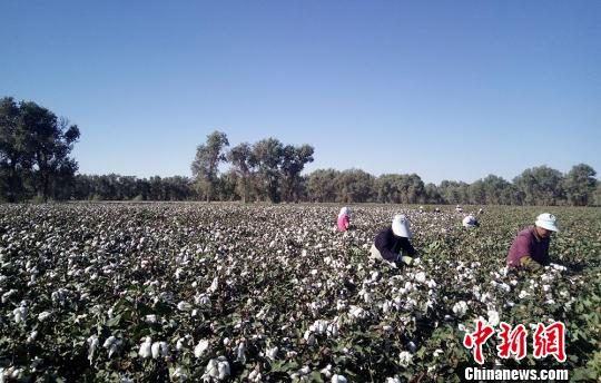 資料圖:圖為新疆兵團第二師三十一團的棉花成熟時當地民眾采摘棉花。 詹春喜 攝