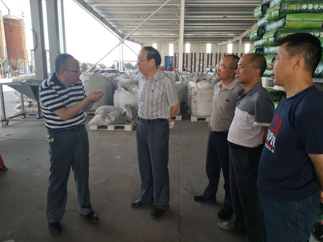 閻會平站長一行首先來到大豐種業種子加工場,參觀了種子包衣、精選、加工、包裝、儲藏等設施設備,詳細詢問了解了種子加工儲藏情況。隨后來到大豐種業公司總部,聽取了大豐種業董事長鈕笑曉關于企業發展歷程、企業人才引進與科研生產情況、企業文化建設和企業發展規劃的匯報,與公司高管進行了座談交流,并實地參觀了種子檢驗室。