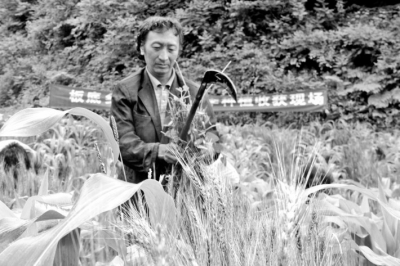 試種基地收割小麥。據悉,板底鄉清河村試種紫色小麥100畝,每畝產量700斤以上。紫小麥試種成功后將逐步推廣種植。 陳志垚攝