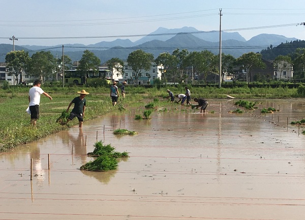 區試基地進行秧苗移栽。由于前段時間一直梅雨季節,技術人員在密切關注天氣變化后,科學管理育秧,控制好秧齡及時組織移栽。站里領導親力親為,連日來穿梭田間地頭保證區試移栽質量。