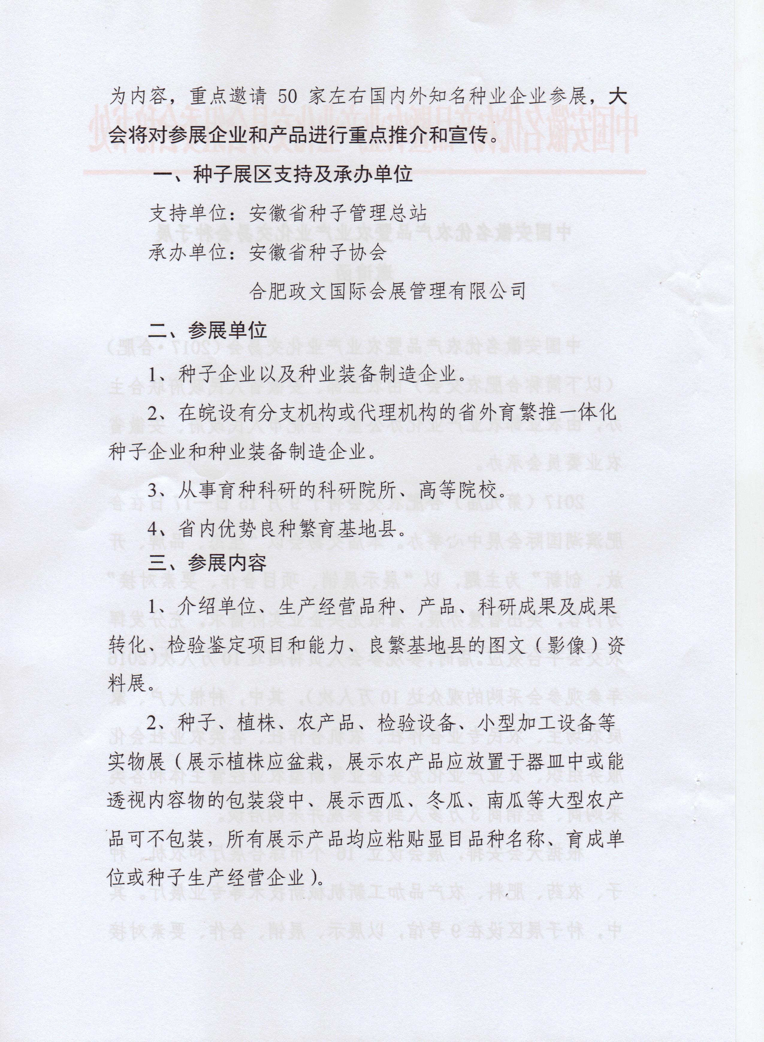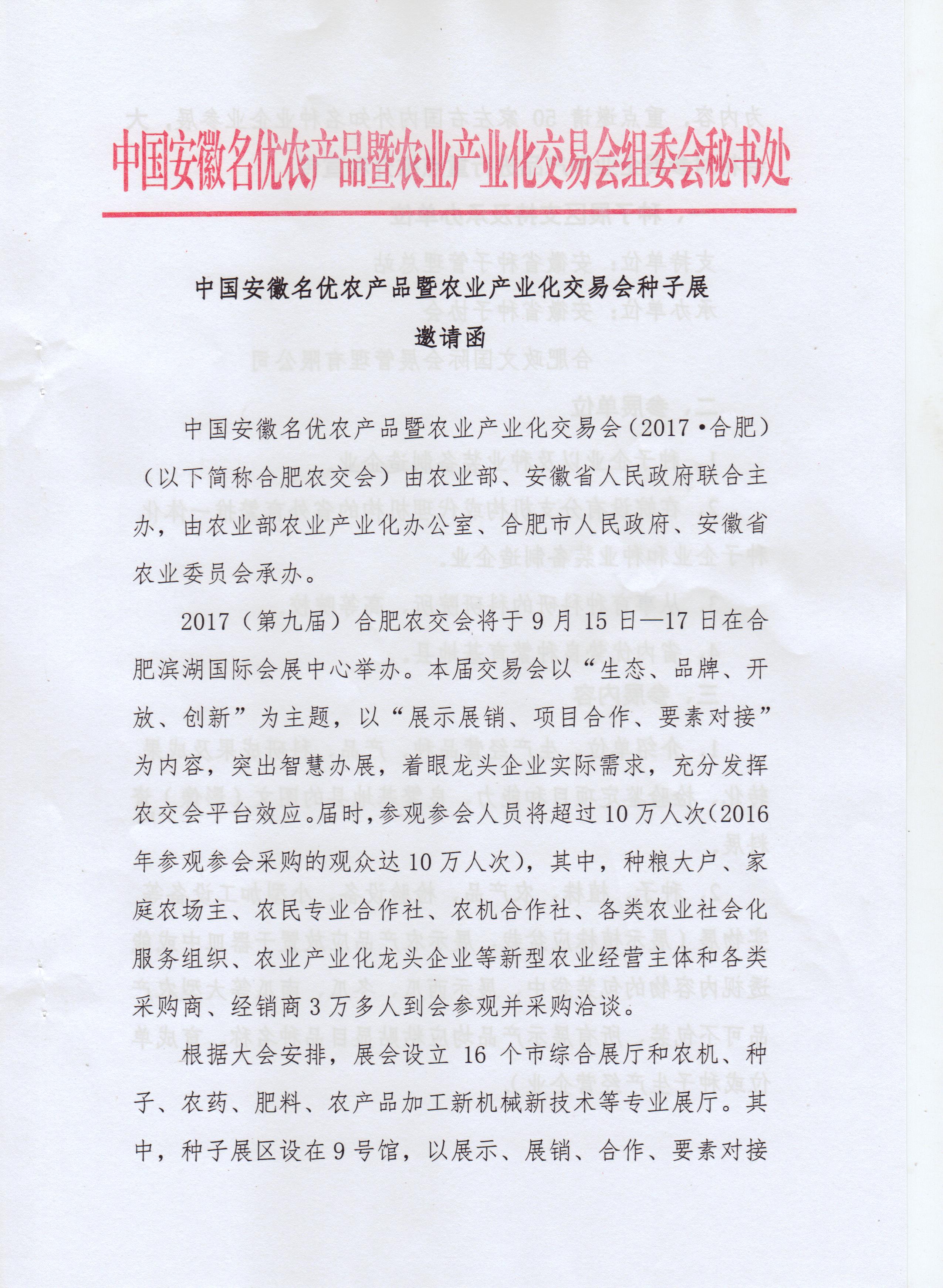 安徽名優農產品暨農業產業化交易會種子展邀請函