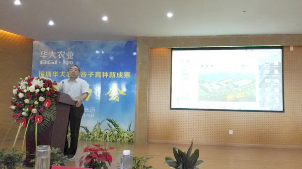 期間,張新友院長陪同王鐵副省長參加了華大農業谷子育種新成果現場觀摩會,并在交流大會上發言。