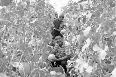 今年,河北省臨城縣從日本引進甜瓜新品種,通過該縣成教學校的農技培訓讓貧困戶掌握標準化種植技術,并向貧困戶提供資金、農資、信息等,實現了訂單化生產,畝收入達2萬元。據了解,該甜瓜品種口感脆甜、果肉多、耐貯運。如今,該縣東洞、支角等20多個村1000余戶貧困戶通過訂單種植甜瓜新品種走上脫貧致富路。圖為該縣東洞村農民在采摘成熟甜瓜。 馬金昱申增軍王永周攝