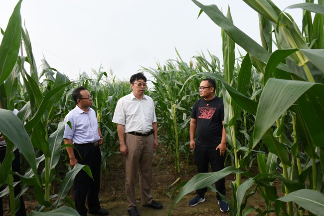 蔣慶功先后到惠民縣、陽信縣新品種展示示范基地,實地查看玉米品種展示田情況,詳細了解糧食高產創建平臺新品種展示示范基地建設及展示示范工作開展情況。