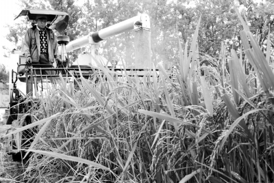 9月7日,江蘇省儀征市真州綠籬農業生態園,農機手正在搶收雜交