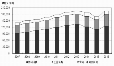 中國玉米需求量變化(2007-2016)