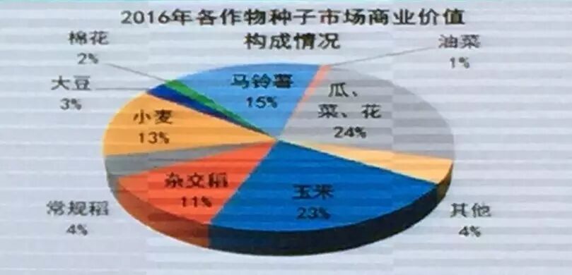 在2016年全國1229.6億元的種子市場商業價值中,5種主要農作物685.4億元(占56%),非主要農作物544.2億元(占44%);其中花生、瓜類、蔬菜、花卉類作物月290億元(占24%),反超玉米(占23%)。