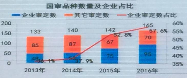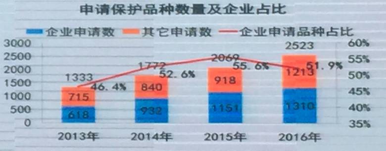2016年,企業通過國審品種95個,占當年全國國審品種的57.6%;企業申請保護品種1310個,占當年申請總數的51.9%,數量和占比均超過科研院所,反映企業對科研的投入已初見成效。