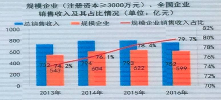 在企業數量大幅下降的同時,我國凈資產億元以上的企業大幅增加。據張延秋介紹,2016年,我國凈資產1億元以上的企業數量達到341家,較2012年增加一倍多,其中凈資產10億元以上的企業由2012年的7家,增加到2016年的15家。