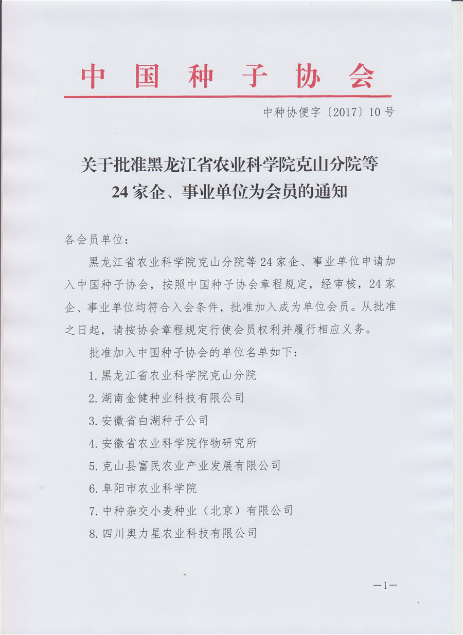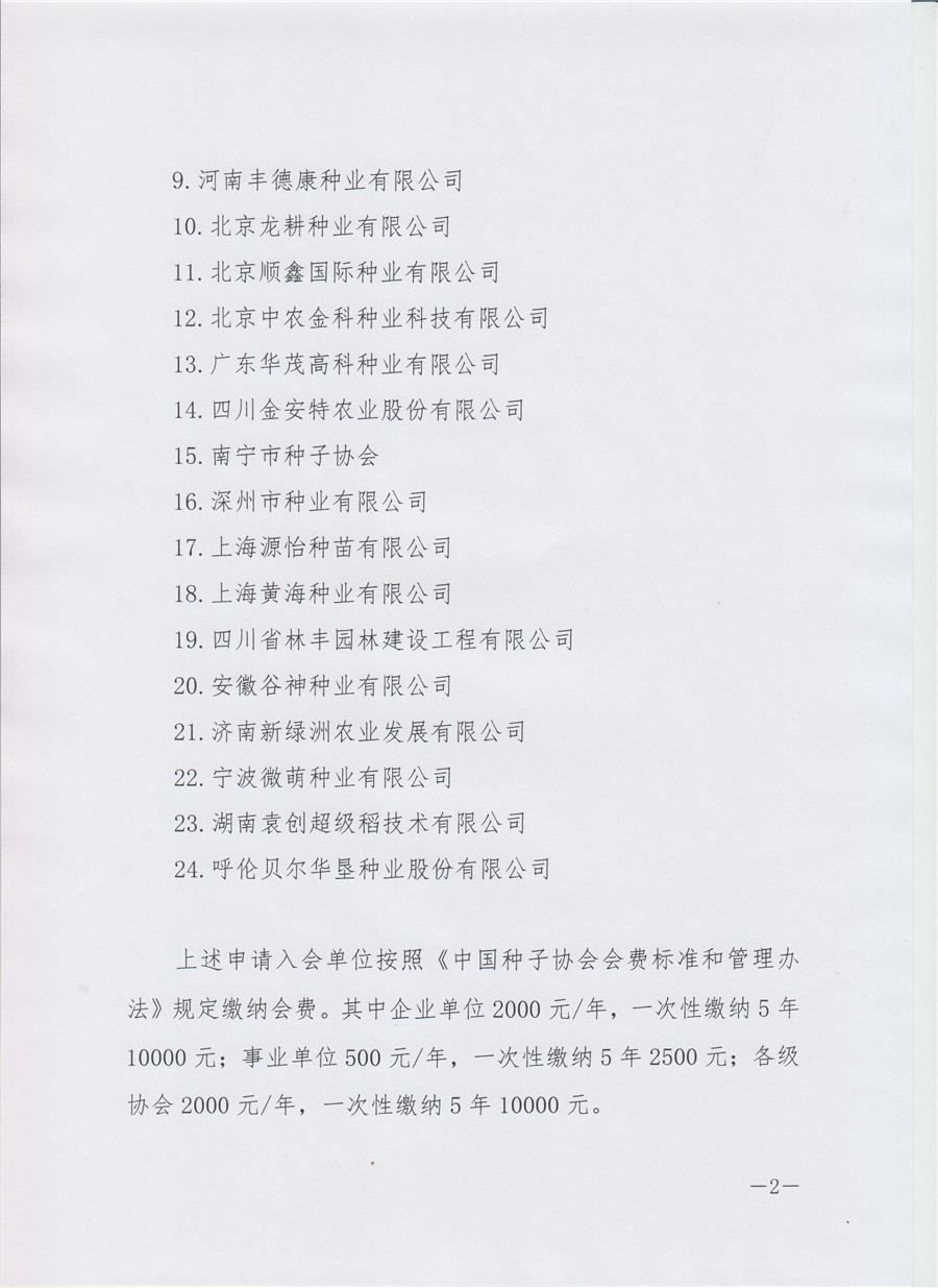 中國種子協會批準24家企事業單位為會員通知
