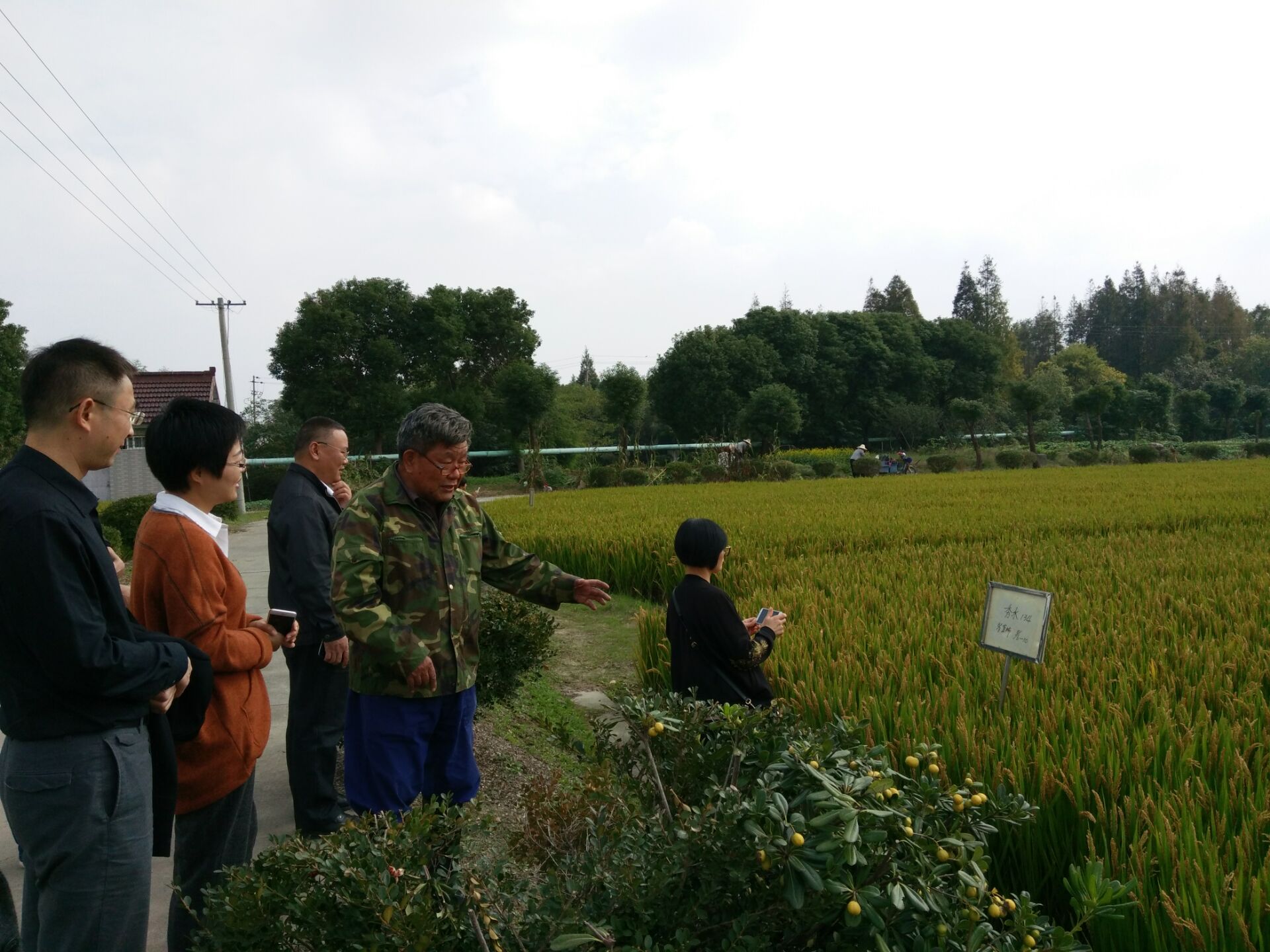 大家實地了該市曹橋街道的省級水稻千畝示范方,嘉興農科院展示示范新品種,及嘉善西塘、姚莊的水稻綠色防控示范區、水稻新品種展示示范區等。在嘉興農科院,姚海根、黃海祥等育種專家,親自給與會人員逐個講解課題組選育的新品種(品系)特征特性。大家仔細聽育種專家的講解,觀察品種特征特性。