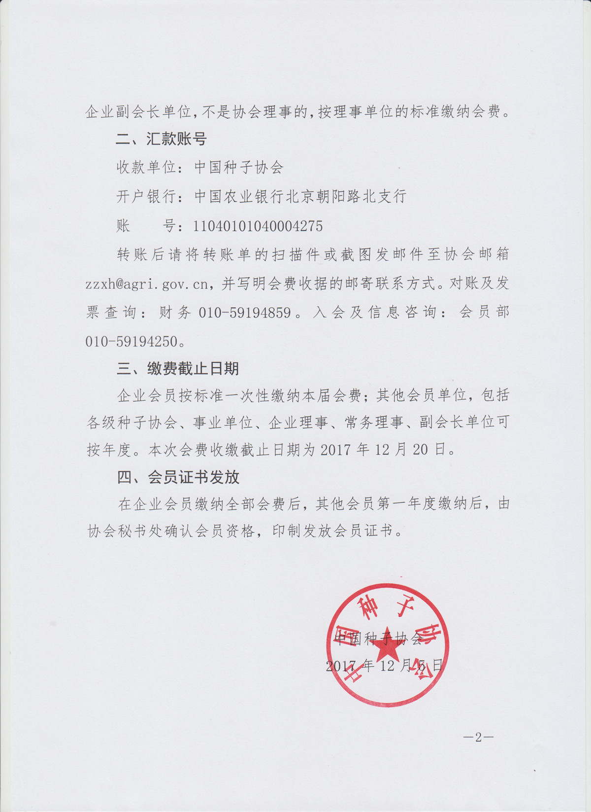 中種協銀行賬戶恢復正常及收繳第六屆會費通知