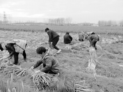 12月9日,安徽省宿州市埇橋區順河鄉可可種植家庭農場組織人員收獲大蔥,以每公斤1.2元的價格出售給外地客商。今年可可種植家庭農場引進“天光一號”優質大蔥種植獲得成功,該品種大蔥一年可收獲兩季,單季畝產在3000公斤左右,經濟效益十分可觀。 祝家剛攝