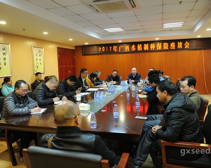 制種保險座談會,自治區種子管理局唐忠平調研員主持會議,中國人保廣西分