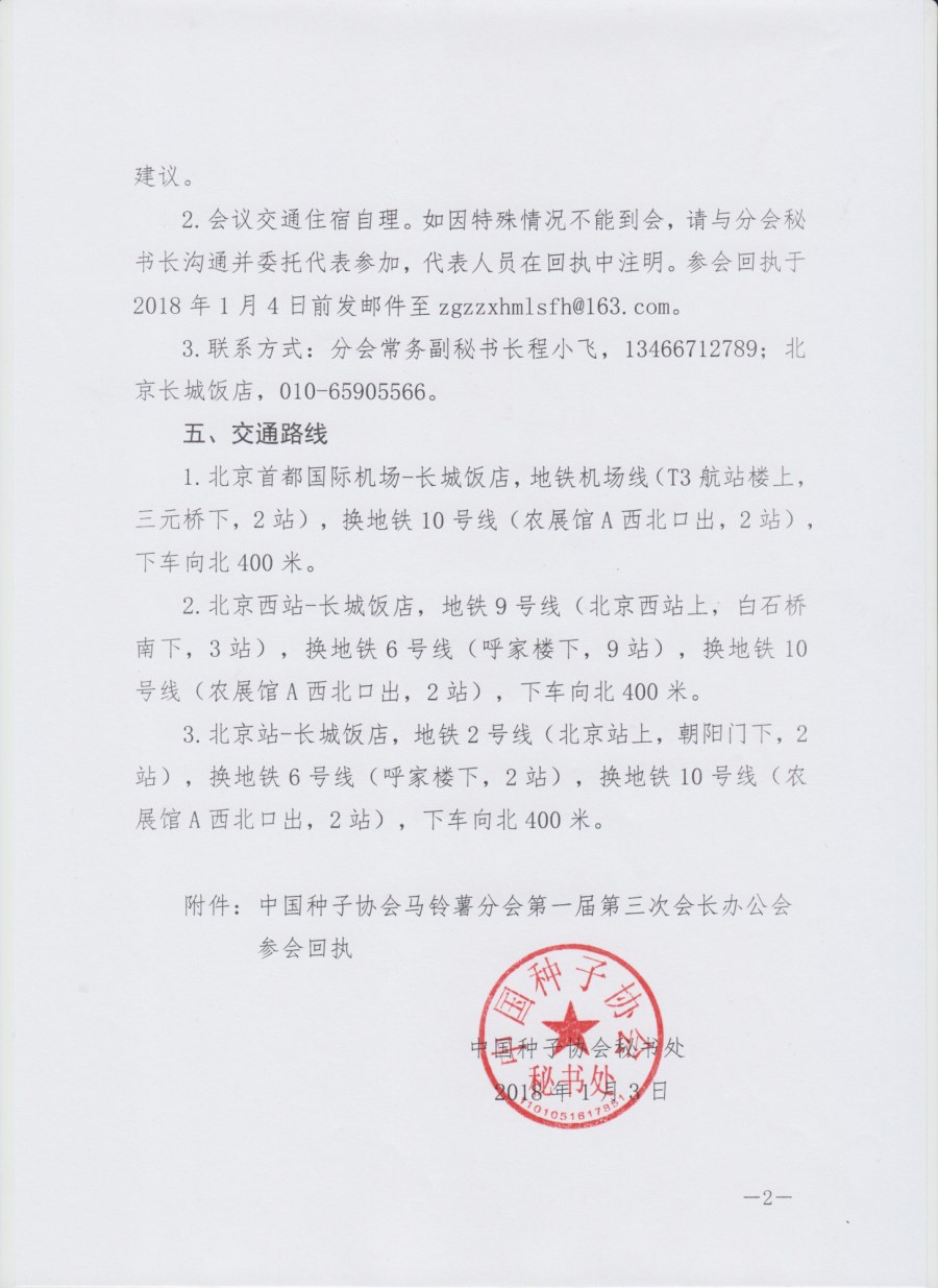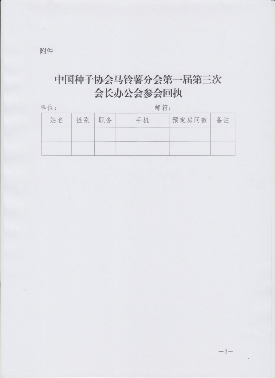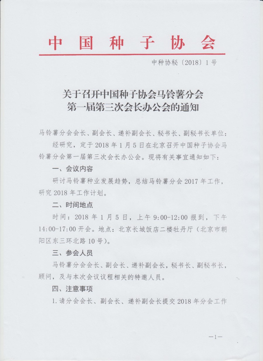 關于召開中國種子協會馬鈴薯分會第一屆第三次會長辦公會的通知