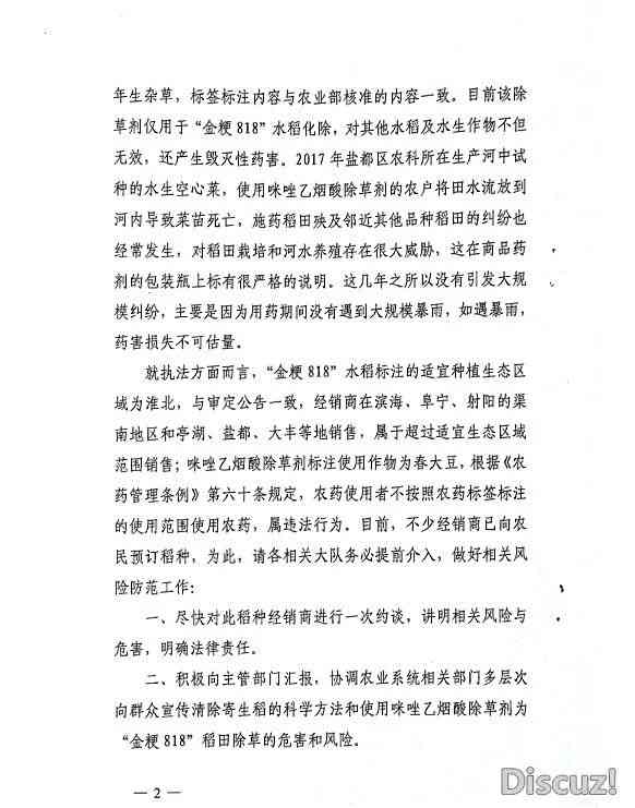 經進一步查詢,得知這些種子,包裝名曰“金粳xx號”(數字我忘記了),由一些村莊農資經營者竭力向農戶推銷,承諾糧食產量,但要求農戶必須購買使用其配制好的不知名的農藥,而且需要保證只能用于該稻種的種植地塊,不能飄到其它田塊,否則就會把別人的莊稼害死。