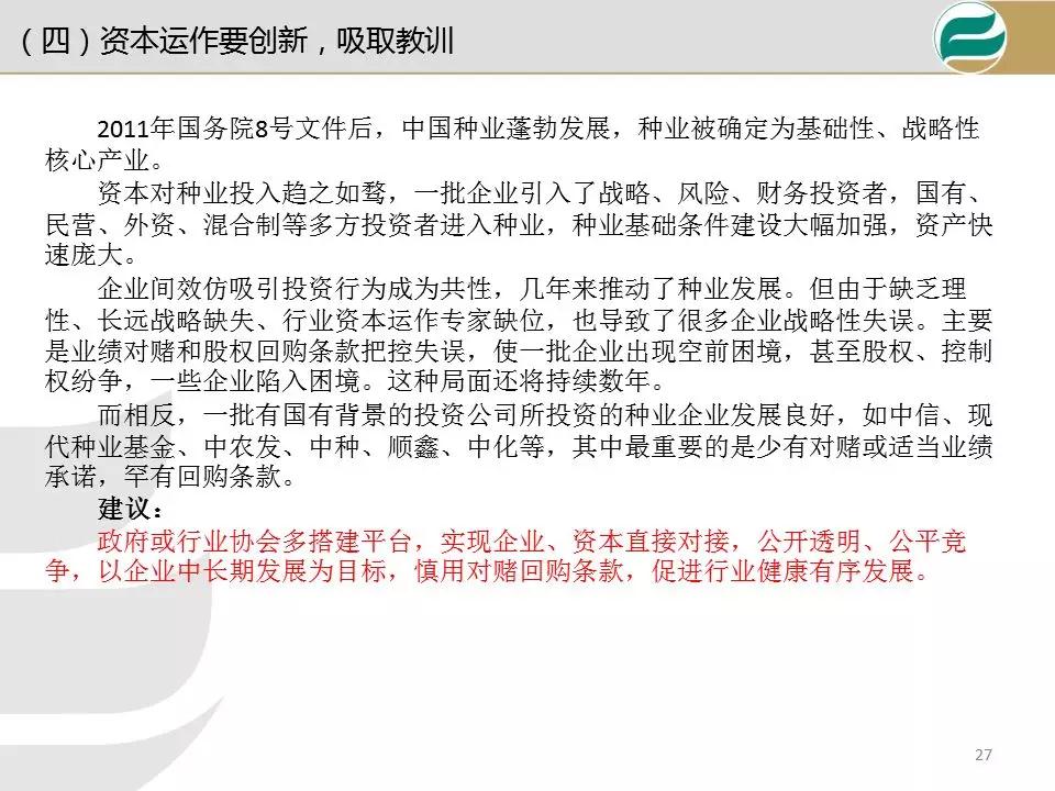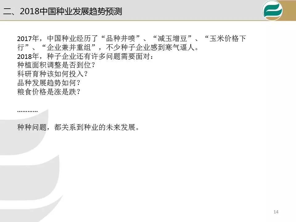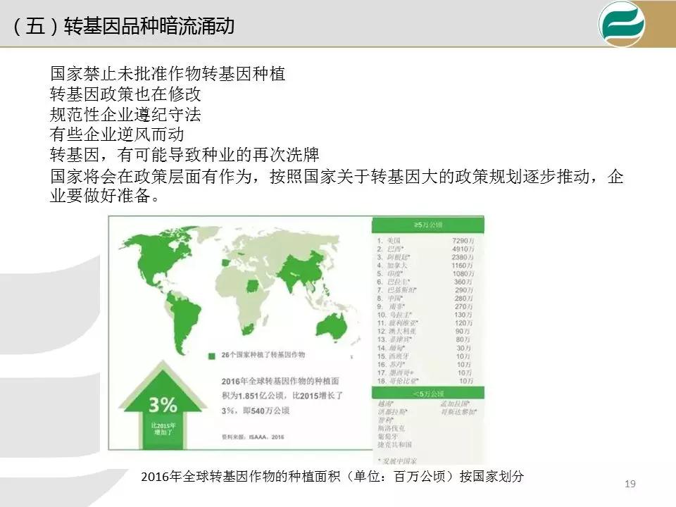 另一方面,種企既要面對國際種業四大巨頭的競爭,又要面對國內同行的競爭,還有制售假劣種子游擊隊的圍攻。種業企業必須轉型升級,幫助種植者降成本和增效益,圍繞種子這個核心,以“種子+”延伸產業鏈,開展企業轉型。下面報告源于今年李繼軍博士在海口會議內容。