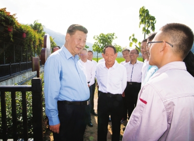 接近正午時分,習近平頂著驕陽來到海口市秀英區石山鎮施茶村,看望農民群眾,考察鄉村振興戰略實施情況。這個村坐落在瓊北最高的火山腳下,過去因自然條件差,村里沒有產業,村民沒有收入。近年來,村黨支部帶領群眾發展石斛產業,成為遠近聞名的在火山巖上發展互聯網種植的明星村,農民人均純收入超過1萬元。在村志館,習近平認真聽取介紹,不時詢問。對該村以黨建為統領,帶動農民發展農業產業、增加農民收入、保護生態環境,因地制宜探索出了“企業+合作社+農戶”致富路的做法表示肯定。聽村支部書記洪義乾講到村里沒有吸毒的、沒有打架斗毆的、沒有上訪的時,他夸獎道:“這個很好。”隨后,習近平沿著石板路步行進施茶村火山石斛園,邊走邊聽村黨支部書記介紹石斛規模化種植、智能噴灌系統、水肥一體化系統運行情況。幾位正在園中勞動的村民圍過來,興奮地同總書記握手。村民們告訴總書記,家門口有了石斛園,外出打工的村民們都回鄉了,每個月發工資,年底有土地入股分紅,日子越過越有奔頭。習近平強調,全面建成小康社會,城市和鄉村都要發展好。鄉村振興,關鍵是產業要振興。要鼓勵和扶持農民群眾立足本地資源發展特色農業、鄉村旅游、庭院經濟,多渠道增加農民收入。農村基層黨組織要成為帶領農民群眾共同致富的主心骨和堅強戰斗堡壘。
