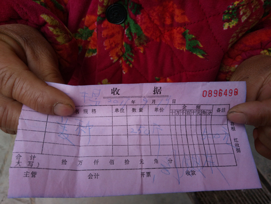 一名村民提供的2017年9月19日購麥種收據上,名稱一欄寫著麥種,并沒有具體的名稱,后面備注著斤數和錢數,開票和收款人處簽名為周銀東。村民們說,就是那個周銀東賣給他們麥種的。