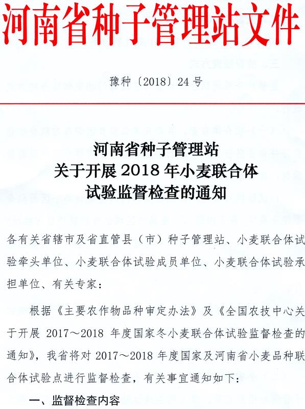 河南開展2018年小麥聯合體試驗監督檢查通知