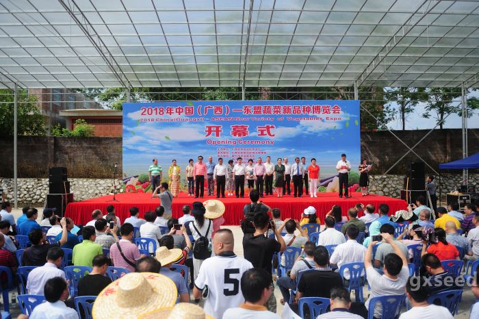 郭緒全副廳長主持開幕式并致辭,指出廣西作為全國最大的冬春露地蔬菜生產基地,素有“南菜北運”“西菜東運”和粵港澳優質“菜籃子”基地之稱。全區蔬菜種植面積2200萬畝,產量3031.8萬噸,產值達700多億元,蔬菜年種植總面積居全國第7位,產量居全國第9位。舉辦2018年中國(廣西)—東盟蔬菜新品種博覽會,將有助于進一步增進與國內外、特別是東盟各國的交流合作、互惠共贏,推動蔬菜種業加快發展。