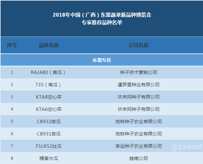 2018年中國(廣西)東盟蔬菜新品種博覽會專家推薦品種名單