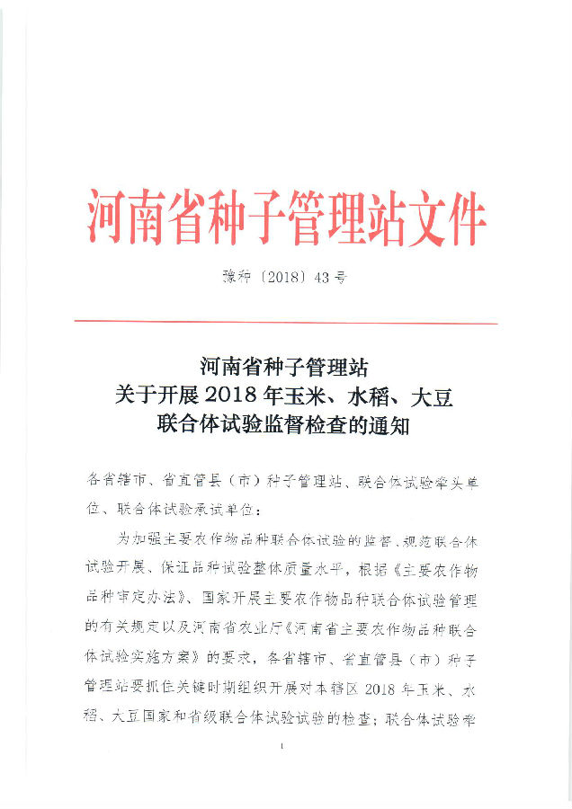 河南開展2018玉米水稻大豆聯合體試驗監督檢查