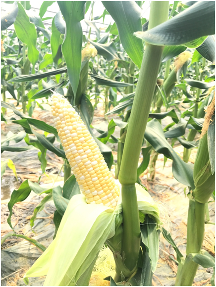杭州種業集團獨占經營許可的甜玉米‘金銀208’,是目前國內領先的非轉基因水果玉米品種。植株整齊,籽粒呈黃色與白色相間,晶瑩剔透,非常飽滿,鮮果采摘后可直接食用,一口下去汁液四溢,除了滿口的玉米濃香,還散發出一股濃郁的牛奶香味,口感甜、鮮、脆、嫩、皮薄無渣、水分足、糖度高達17度。