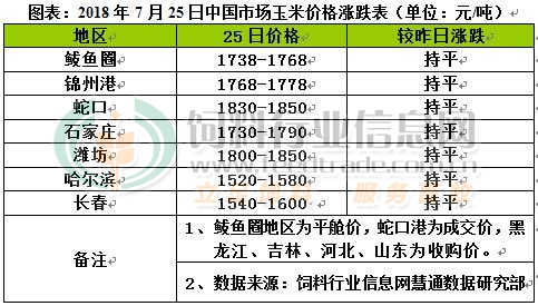 7月25日大連商品交易所(DCE)玉米期貨主力合約c1809開盤價1775元,收盤價1771元,跌2,最高1778元,最低1769元,結算價1772元,成交量44352手,持倉365378手,日減倉14858手。