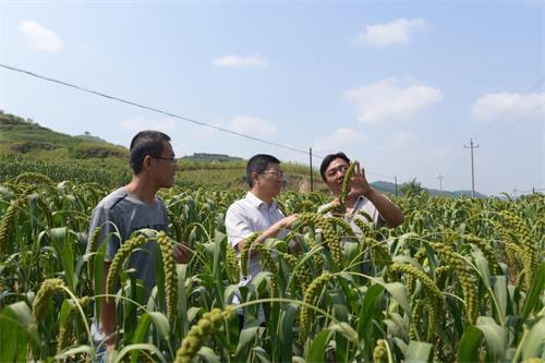 近日,延安市農科所所長高生君一行三人對延川縣新品種試驗示范田進行調研指導,延川縣農技中心副主任張明富一同調研。高生君一行先后深入關莊鎮關家莊村、賈家坪鎮馬家灣村分別對谷子、高粱生長情況進行實地察看。