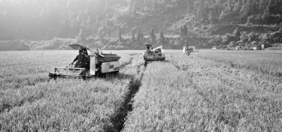 ”1000萬公斤,創產值1.6億元,惠及制種農戶1.1萬戶。圖為思旸鎮磨寨村移民新村雜交水稻制種基地“金種子”收割現場。