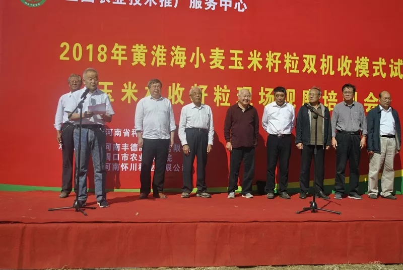 10月10日,由全國農業技術推廣服務中心主辦,河南省種子管理站主持,河南豐德康種業有限公司、周口市農業科學院、河南懷川種業有限公司承試的2018年黃淮海小麥玉米籽粒雙機收模式試驗玉米機收籽粒現場觀摩培訓會在河南豐德康種業有限公司滎陽試驗站舉行。