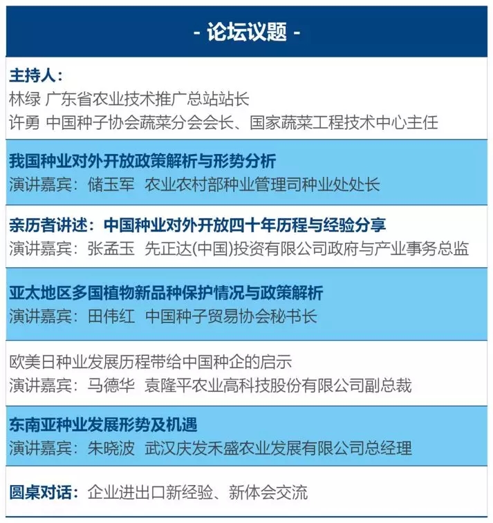 大潮起珠江,值此改革開放40周年的歷史節點,第七屆柯木塱種業論壇將以“種業對外開放40年”為主題,在我國對外開放的窗口廣東廣州市,討論種業對外開放新政策、新形勢,總結輸出新經驗、新體會,擴大開放的必要性不僅僅是行業發展的需求,從某種意義上講,更是要憑借擴大開放帶來的新勢力,形成做強中國種業所需要的更大推動力。這是一場偉大的變革,種業精英此時此地匯聚具有特別意義。